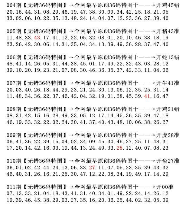 | 005期:绝杀五码 【01.17.32.48.49】开:43 准 |