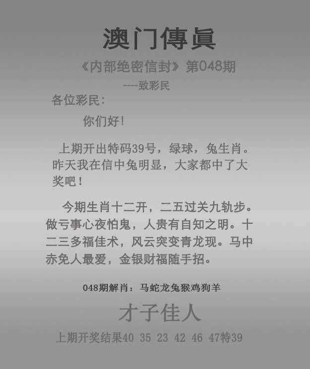 | 048期:绝杀五码 【32.39.40.46.47】开:00 准 |