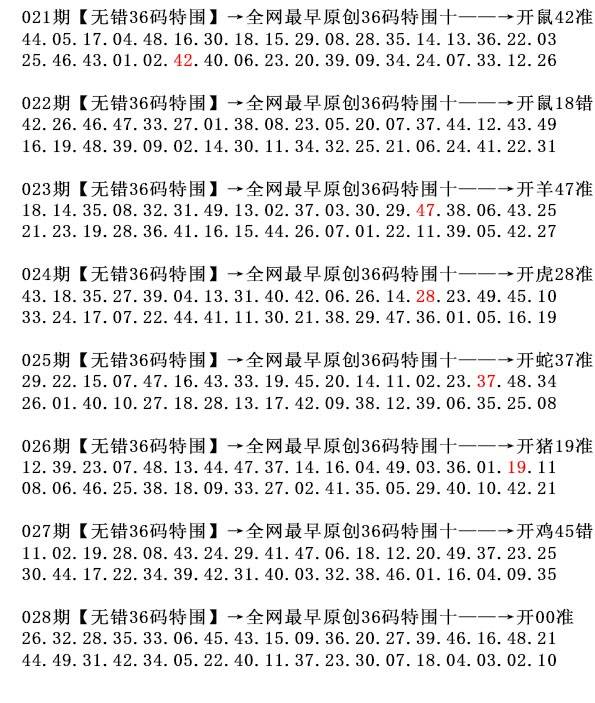 021期: 全网最早无错36码 开: 42挂× [01.02.03.04.05.06.08.09.10.11.13.15] [17.19.21.22.23.24.25.26.28.29.31.32] [33.34.35.36.38.40.43.44.45.46.47.48] |